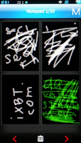 Заметки можно набирать при помощи виртуальной клавиатуры, которая оказалось достаточно удобной, но язык раскладки — только английский. Рисовалка — забавное приложение, в котором пальцем можно рисовать что угодно. Настраивается цвет, толщина, тип виртуального рисующего предмета. Все эти приложения нельзя назвать необходимыми, они присутствуют в плеере скорее «на всякий случай».
