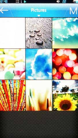 Плеер умеет открывать картинки формата JPEG. Большие файлы он «пережевывает» достаточно быстро. Папка с картинками представлена в виде набора миниатюрных изображений.