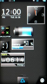 Думаю, если взглянуть на фото, все станет ясно. Виджеты меняются местами по вашему желанию — могут быть помещены на любой экран, могут друг друга перекрывать, в общем — полная свобода действий. Их функции разнообразны, самые интересные — включение записи на диктофон одной кнопкой (при этом не включается обычный диктофон, все действие происходит тут же, в меню), регулировка яркости, установка будильника. Всего есть 11 виджетов. Те, которые будут на экране, вы выбираете сами. Так же вытаскиваются на экран иконки функций — для запуска музыки, видео и так далее. Вы можете спрятать ненужные и показать нужные. Смена типа меню происходит быстро — пальцем вытаскивается панель, расположенная внизу экрана, и на ней выбирается нужное меню.