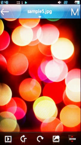 Любую картинку можно установить в качестве фона в меню. G-Sensor позволяет автоматически поворачивать изображение в зависимости от положения плеера в пространстве, но эту функцию можно отключить, прямо в просмотрщике, не отвлекаясь на общие настройки плеера. Есть и слайд-шоу. Картинки можно зуммировать как при помощи ползунка, так и «мультитачем» — раздвигая пальцы в разные стороны. Плеер хорошо показывает изображения, можно достаточно быстро передвигаться по участкам увеличенной картинки. Например, можно, перетаскивая картинку по экрану пальцем, читать отсканированные лекции или любую другую информацию, представленную в виде картинки. При этом подтормаживаний практически нет.