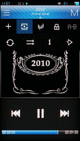 На экране воспроизведения имеется полоса прогресса, которая, разумеется, «кликабельна». Можно нажать в любом ее месте и сразу оказаться в соответствующем месте трека. Перемотку можно совершать и при помощи кнопок вперед/назад (сенсорных или механических, что на правом торце плеера).