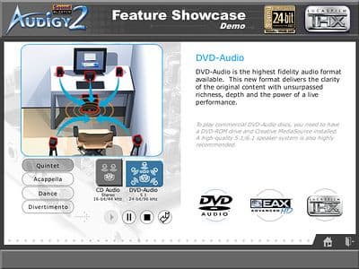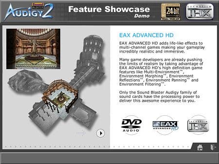 В отличие от железячной части и профессиональных особенностей, здесь мы можем похвалить Creative за прекрасную работу. Все демки совершенно новые, интерактивные презентации полностью переработаны.