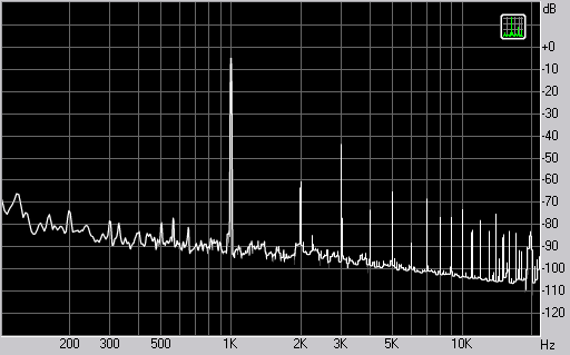 Спектр сигнала, воспроизводимого колонкой при подаче частоты 1 кГц, подключенной к внешнему высококачественному усилителю