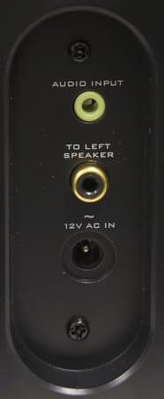 Разъемы для подключения расположены в задней части этой же колонки. Левая колонка подключается проводом длиной 2 метра.