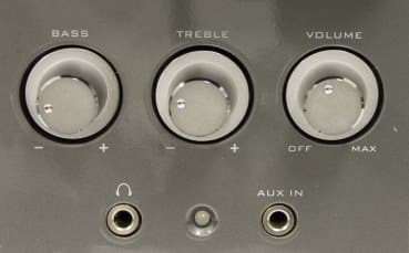 Органы управления расположены на правой колонке. Здесь предусмотрены регуляторы: громкости и отдельно низких и высоких частот. Регулятор громкости в минимальном положении является выключателем питания. На передней колонке также имеются: выход на наушники, дополнительный вход и индикатор питания.