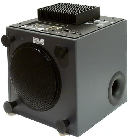 Сабвуфер выполнен таким образом, что диффузор низкочастотной головки направлен вниз, в пол. Диаметр диффузора, изготовленного из пропитанной бумаги, составляет 18 сантиметров. Гибкий подвес выполнен из резины. Диффузор НЧ-динамика защищен от механических повреждений металлической решеткой. Сам сабвуфер устанавливается на ножки высотой четыре сантиметра. Каждая из четырех ножек имеет мягкую резиновую прокладочку для устранения вибраций.