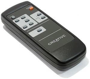Комплектующийся беспроводной пульт дистанционного управления, практически такой же, как и в акустике GigaWorks S750. Добавлено несколько новых кнопок выбора режимов работы декодера.