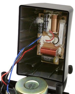Соединение динамиков осуществлено через кроссовер, выполненый из двух фильтров второго и третьего порядка. Внутри корпуса, изготовленного из пластика, расположен синтепон.