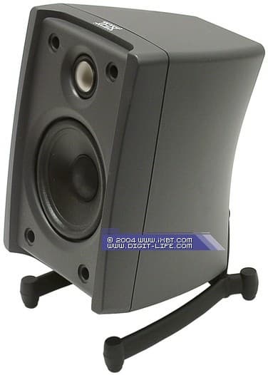 Все сателлиты, как вы уже заметили, совершенно одинаковые, это значительно упрощает их производство. Габариты сателлита с подставкой составляют 12 × 21 × 14 сантиметров (Ш × В × Г). Акустическим оформлением двухполосных колонок является схема закрытый ящик. Диаметр бумажного диффузора среднечастотной головки составляет 7,5 сантиметров. Гибкий подвес изготовлен из мягкой резины. Используемый твиттер имеет фольгированный купол диаметром 2 сантиметра. Магнитные системы обеих головок имеют магнитное экранирование.