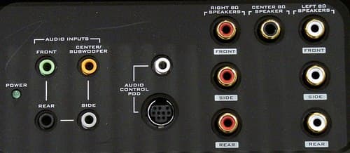 При субъективном прослушивании сигнал снимался со звуковой карты Creative Audigy2 ZS Platinum Pro. Подключение осуществлялось входящим в комплект акустики проводом с разъемами четыре стерео-миниджека на три миниджека (два из них четырехкотнактные).
