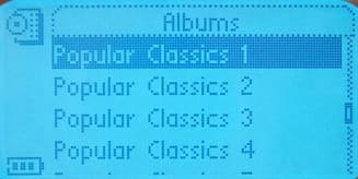 Многострочный графический дисплей позволяет увидеть полное название каждого альбома.