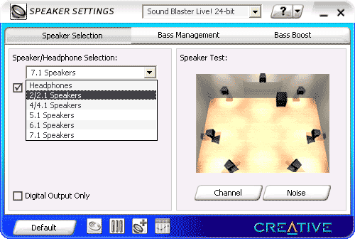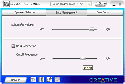 Панель конфигурации динамиков Speaker Settings — Bass Boost