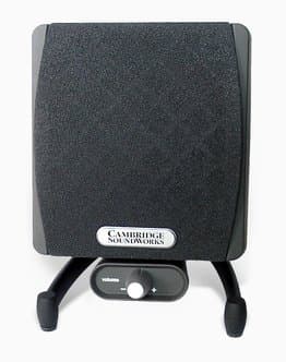 Предусмотрительность Creative заслуживает всяких похвал. Центральную колонку можно приклеить к верхней поверхности монитора или же поставить на стол перед монитором. В обоих случаях можно воспользоваться входящими в комплект самоклеющимися резинками. При этом наклон динамика имеет плавную регулировку на основе шарнира.