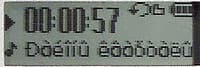 Компактные размеры самого плеера не позволяют применить ЖКД большого размера, хотя имеющегося в принципе уже достаточно для управления при помощи меню, индикации текущего состояния устройства и отображения названия композиции. Дисплей полностью графический с синей подсветкой, но… мелковат. Впрочем, постоянно на него любоваться не нужно. Интересной особенностью является возможность поворота изображения на 180 градусов, что позволяет использовать плеер, как правшам, так и левшам (кстати, второе даже удобнее). Как говорит хорошая пословица: «Лучше один раз увидеть, чем сто раз услышать», так что просто приведу схему дисплея в режиме воспроизведения аудиофайлов: