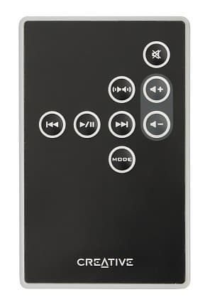 Пульт ДУ дублирует кнопки, расположенные на устройстве и дополнительно имеют кнопку воспроизведение/пауза, следующий и предыдущий трек и кнопку MUTE.