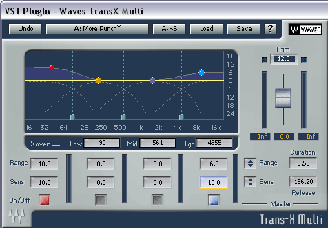 Слуховая проверка показала — действие Crystalizer при наличии в записи резких пиков, особенно на звуках ударных инструментов, действительно схоже с действием шейпера Trans-X Multi с определенными настройками, показанными на скриншоте.