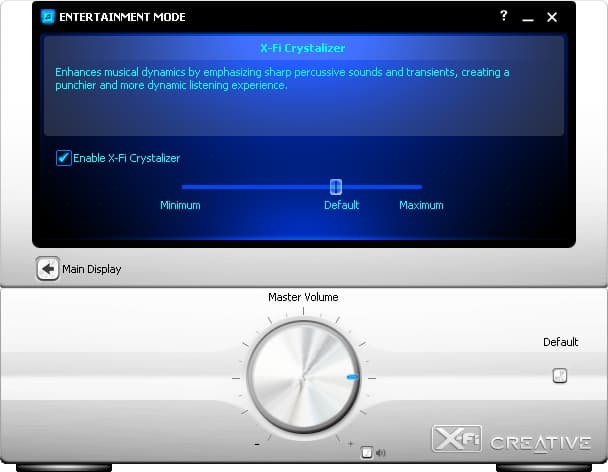 Что нового по сравнению с прошлым поколением USB карт? В первую очередь, имеется поддержка технологий X-Fi (Crystalizer, CMSS-3D). И, конечно, более современный внешний вид, с притягивающим взгляд большим цифровым регулятором громкости, который мы впервые увидели в Xmod.