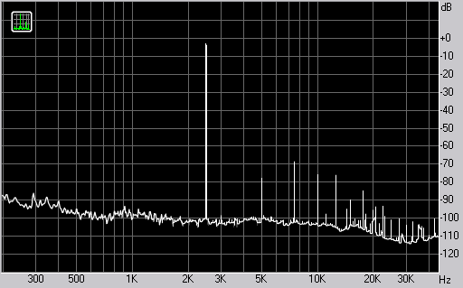 Спектр сигнала, воспроизводимого колонкой при подаче частоты 2,5 кГц