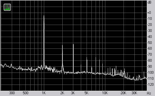 Судя по спектру, количество искажений у колонок среднее, с преобладанием в высокочастотной области. Среди кратных гармоник в спектре присутствуют пятая и иногда седьмая.
