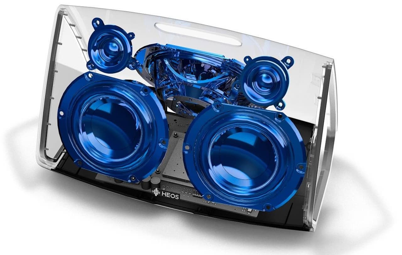 Heos Drive можно считать в определенном смысле устройством, созданным по принципам традиционных решений мультирум. Эта модель устанавливается в стойку и поддерживает четыре зоны, обслуживаемые усилителями класса D с максимальной выходной мощностью 60 Вт (есть возможность объединения каналов для увеличения мощности), а также оборудована коммутационной матрицей. Кроме работы в составе системы Heos, данная модель может быть интегрирована в другие системы мультимедиа благодаря поддержке популярных протоколов сетевого управления.
