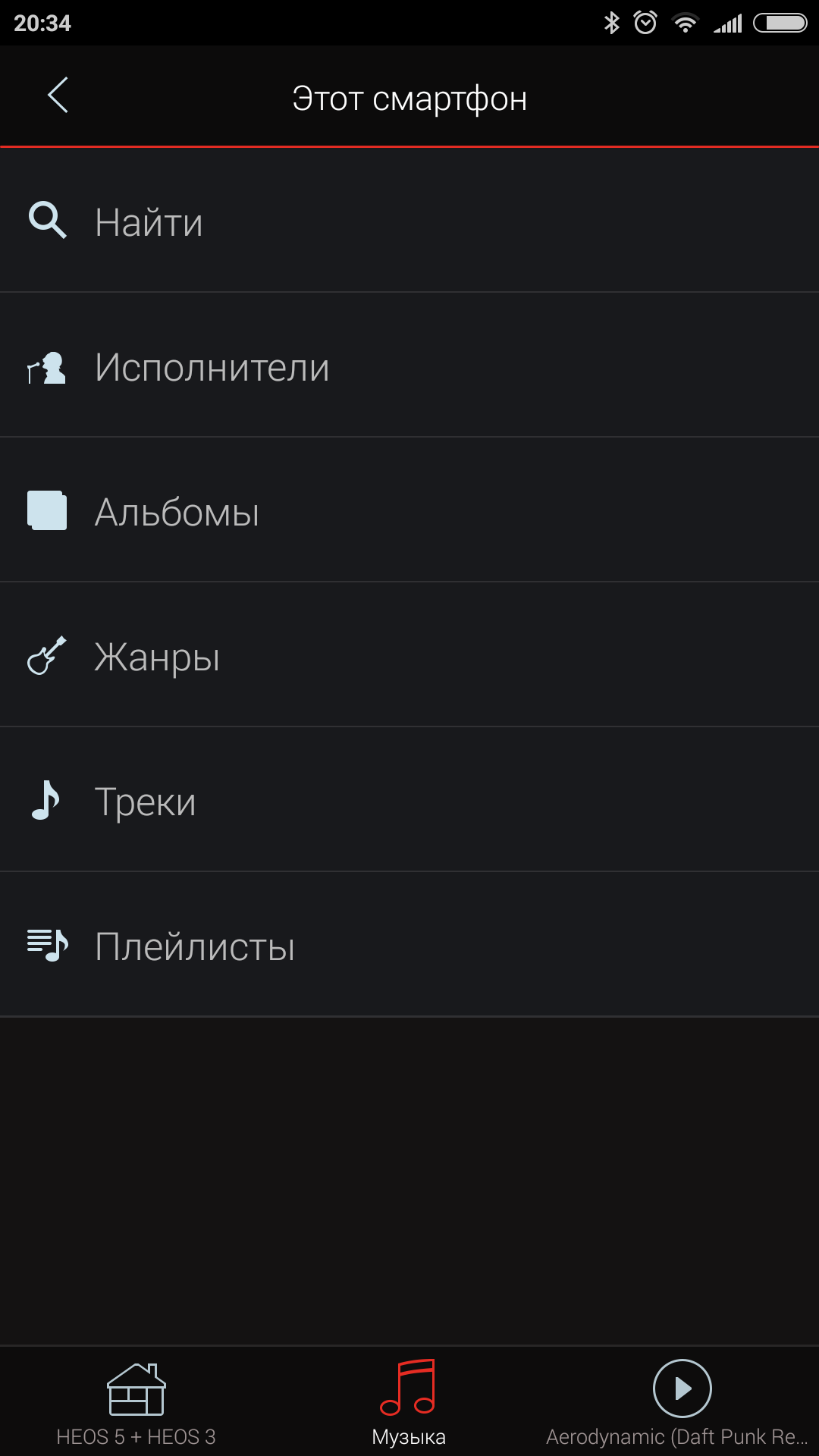Кроме того, в списке присутствуют пункты пользовательских плейлистов, истории и избранного. Здесь стоит обратить внимание на то, что большинство вариантов, включая трансляции с онлайн-источников, медиасерверов, локальных устройств и входов, не требуют работы утилиты на смартфоне. То есть она может быть выключена и выгружена из памяти мобильного устройства. Правда в этом случае есть риск «потерять управление» и остаться без возможности быстро выключить звук по сети.