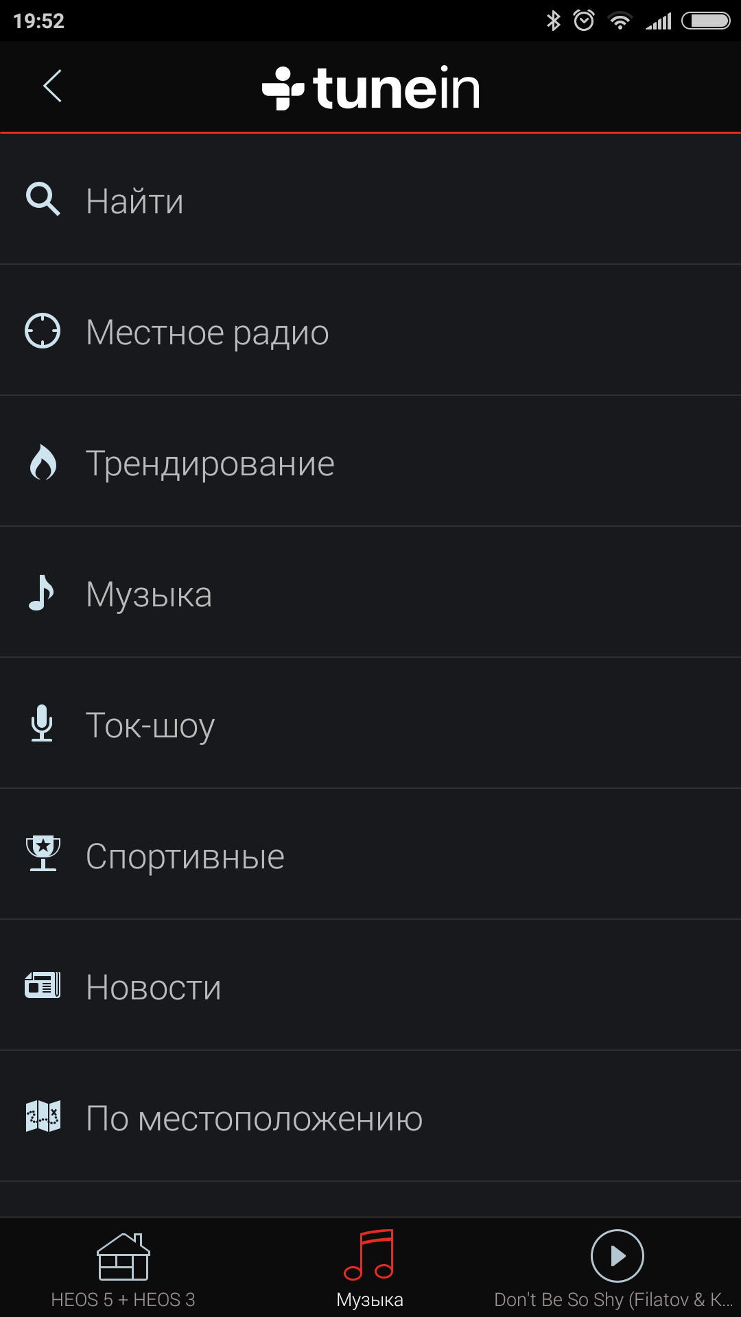 - сетевые сервисы tunein, Deezer и SoundCloud (список для работы на нашем рынке);