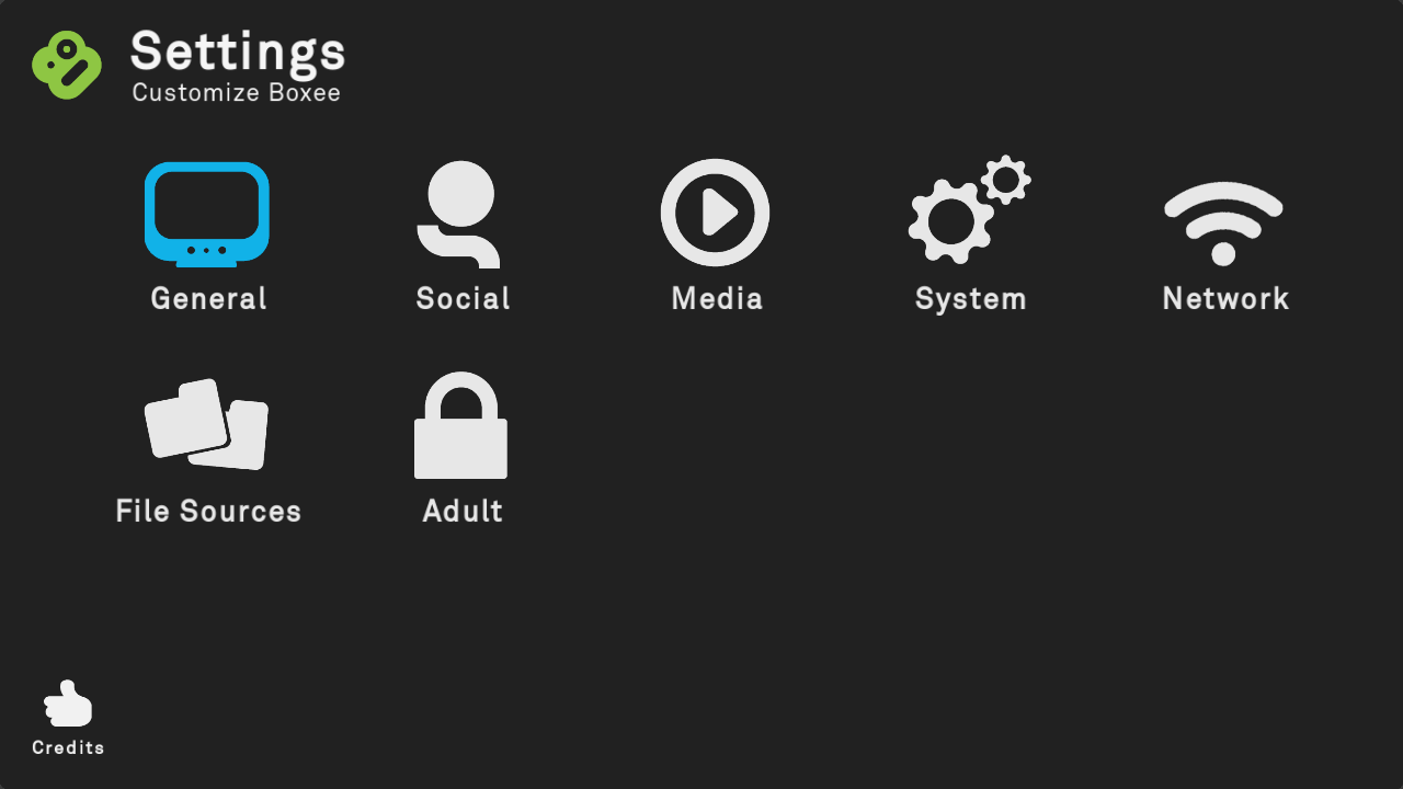 Начинается навигация с домашнего экрана. На нем находятся крупные значки для перехода к публикациям из социальных сетей («Friends»), списку «Посмотреть позже» (в него можно добавлять ссылки из файлового браузера или онлайновых сервисов), ТВ шоу, фильмам, приложениям и файлам. В нижней части окна — три рекомендованных ролика от Boxee и партнеров (например, наиболее популярные сегодня на YouTube).