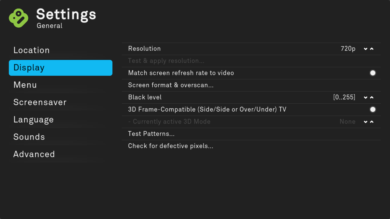 На первой («General») можно выбрать ваше местоположение для корректного отображения информации о погоде и фильтрации контента. Настройки видеовыхода включают в себя выбор разрешения, включение опции по автоустановке кадровой частоты, размер оверскана, динамического диапазона цвета и режима 3D. Под последним понимается корректное отображение меню устройства во время показа 3D-видео в форматах «два кадра на одном». Мы подробнее поговорим об этом позже. Есть возможность изменить представление пунктов в некоторых режимах, выбрав «только файлы», «только избранное» или «все сразу».