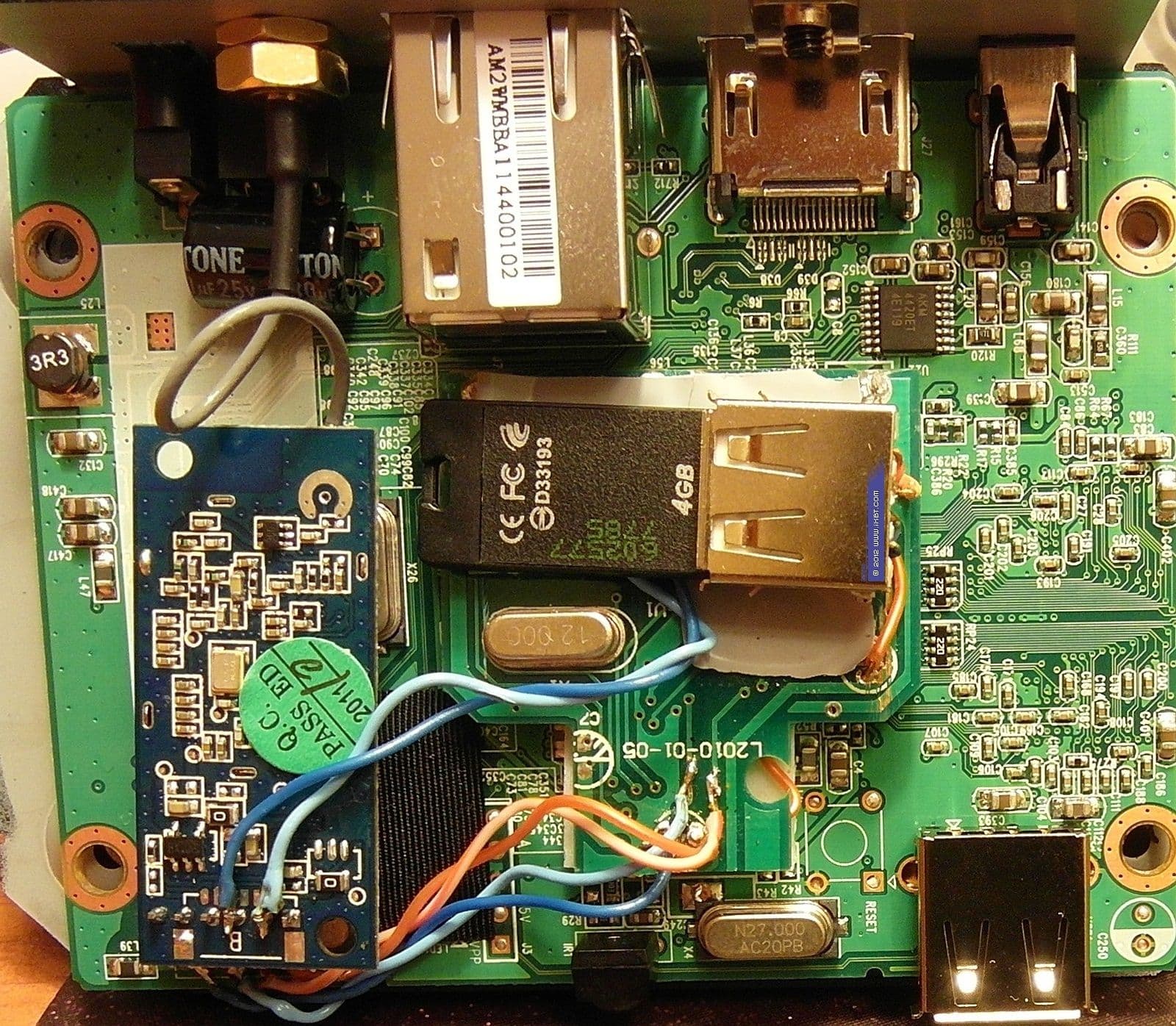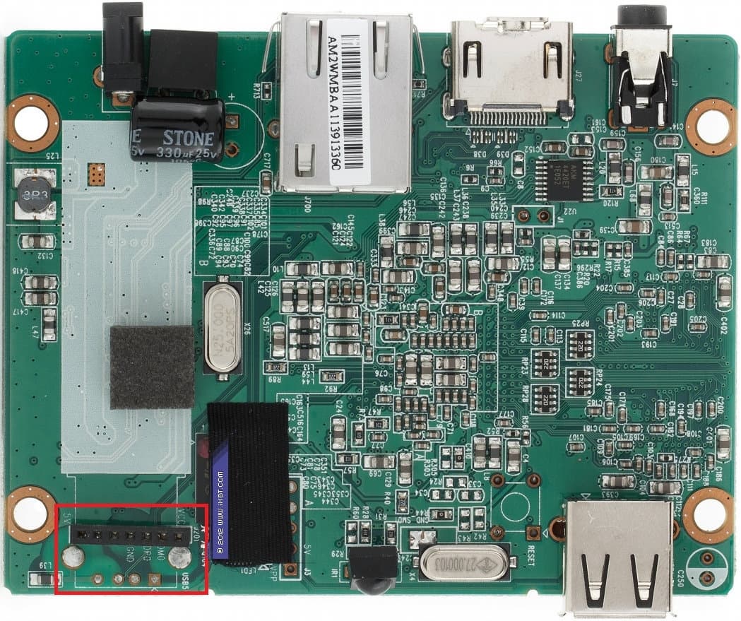Отчаиваться не стоит, благодаря модификации с Wi-Fi-модулем плееры имеют внутренний USB-разъём с заботливо промаркированными контактами (выделен на фото ниже).