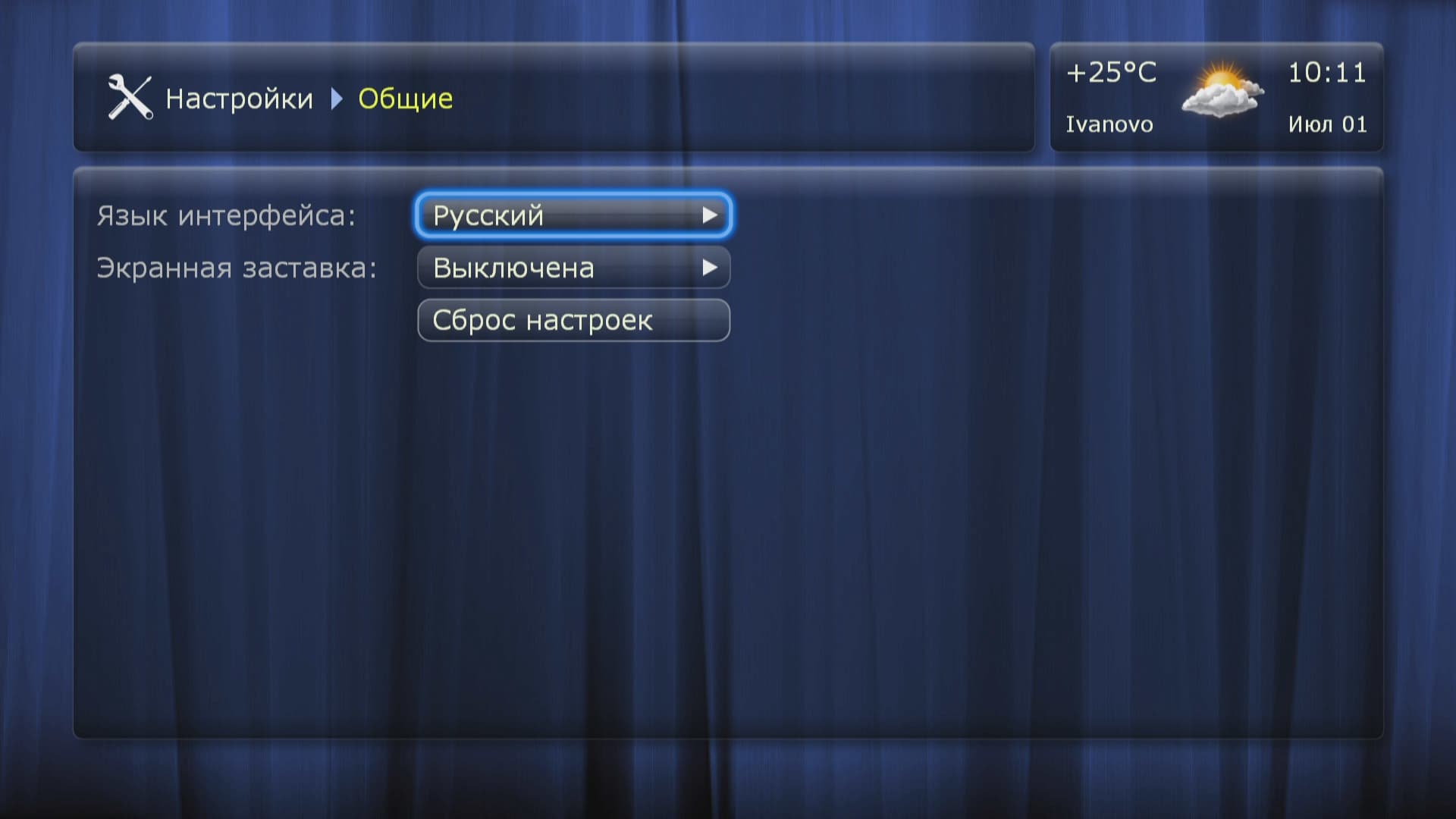 Язык интерфейса, экранная заставка, сброс настроек | Настройка даты, времени, а также автоматической синхронизации с серверами времени (разрешается ввести свой сервер) |