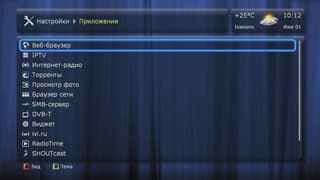 Все эти сервисы собраны в двух разделах главного меню: ТВ и Приложения. Начнём с первого. Здесь на выбор имеется два сервиса — Картина.ТВ и IPTV. С первым сервисом мы разобрались почти мгновенно, получив отлуп в виде просьбы ввести пару логин/пароль. Приобрести подписку можно на сайте сервиса http://kartina.tv, здесь доступны 120 каналов, а также широкий выбор архивных записей. Стоимость подписки составляет около 15 евро за один месяц.
