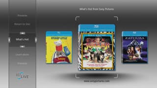 В заключение обратимся к одной любопытной технологии, имеющейся в Blu-ray-дисках. Не во всех, конечно, а лишь в некоторых. Нетрудно догадаться, чьего производства эти диски. Технология эта называется BD-Live (Blu-ray Disc — Live), она разработана и запатентована корпорацией Sony. Назначение её заключается в осуществлении доступа к интерактивным развлечениям: интернет-играм, конкурсам и прочим web-сервисам. Также с её помощью пользователь может получить дополнительные материалы о фильме, которых нет на имеющемся у него диске. К счастью, у нас нашёлся один такой Blu-ray-диск (признаться, он же и единственный «настоящий» BD) — мультфильм о фрикадельках в формате Blu-ray 3D. Эти 3D функции в нашем плеере, конечно же, не работают; к счастью, данный диск можно смотреть и в обычном 2D-формате.