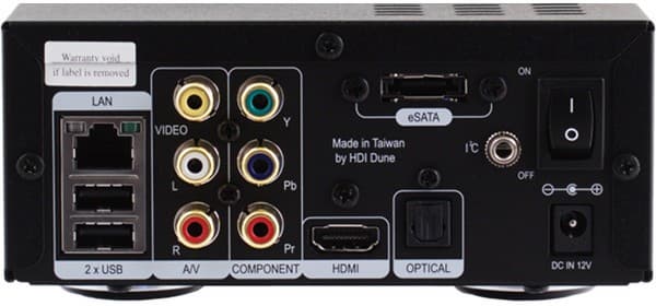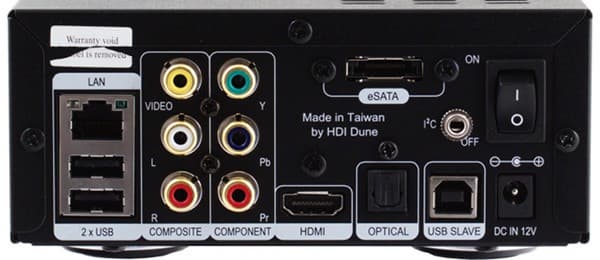 Интерфейсы, по сравнению с рассмотренными ранее стоечными моделями, были несколько сокращены — композитное и компонентное видео, аналоговое стереоаудио, цифровой оптический звук и, конечно, HDMI. Так, «потерялись» S-Video, цифровой коаксиальный и многоканальный аналоговый аудиовыходы. В эпоху повсеместной «цифры» это не критично. Для модификаций D1 и H1 предусмотрен вход USB для подключения внутреннего винчестера к ПК. Также на задней панели есть сетевой порт, пара USB 2.0 и eSATA. Несколько обособлено выглядит разъем I2C, пока не очень понятно, зачем он может пригодиться.