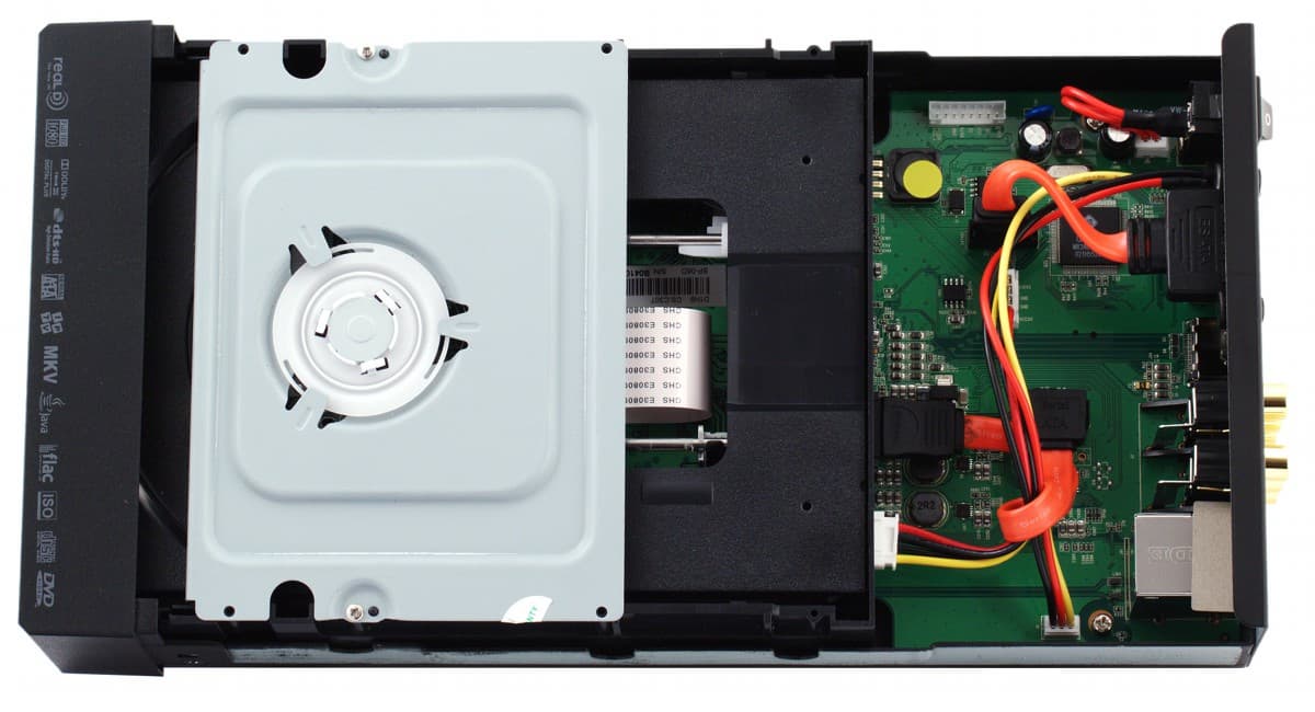 Плееры имеют достаточно компактный корпус, и если в нем находится еще и жесткий диск или оптический привод, то температурный режим может оказаться не очень хорошим. Основной процессор использует термопрокладку для передачи тепла на нижнюю часть корпуса. Измерение ее температуры после длительного использования показало, что нагрев составляет 40—45 градусов. Никаких проблем с работой самого устройства это не несет. Однако очень рекомендуется для установки внутри плеера использовать жесткие диски с пониженным энергопотреблением. Кроме того, мы бы не советовали эксплуатировать плееры в стесненных условиях.