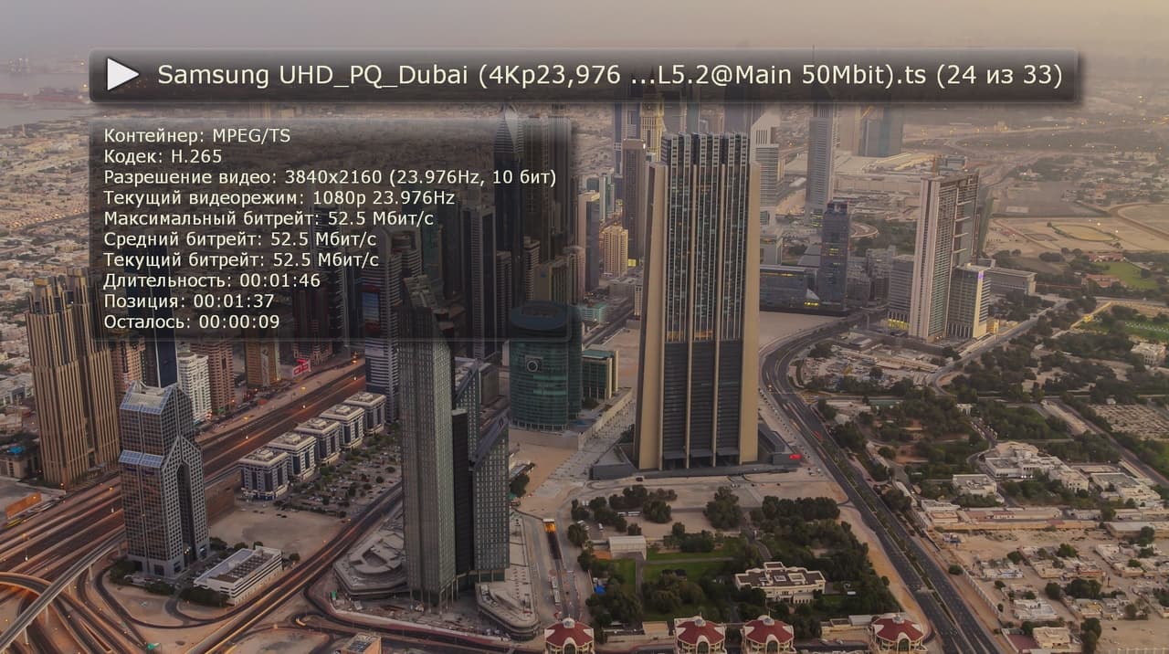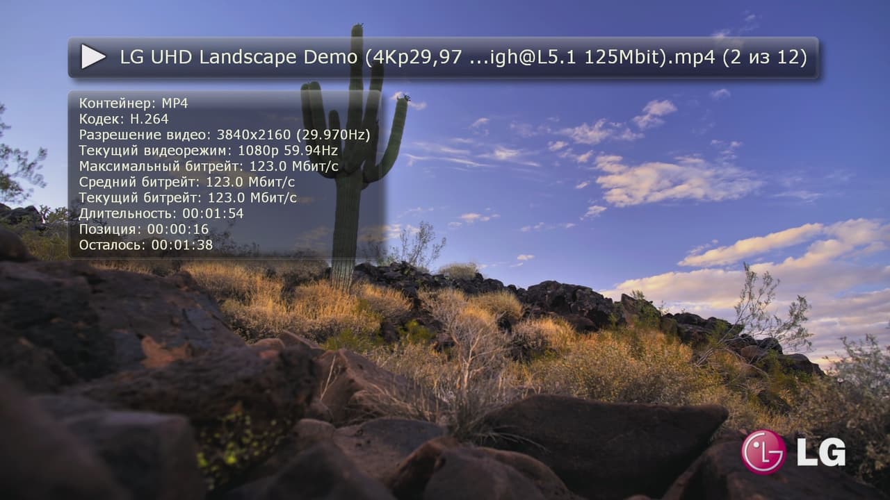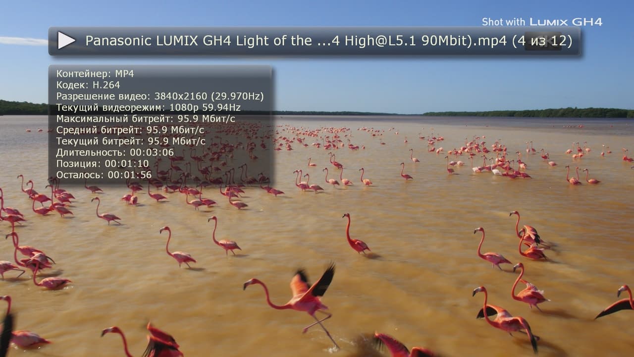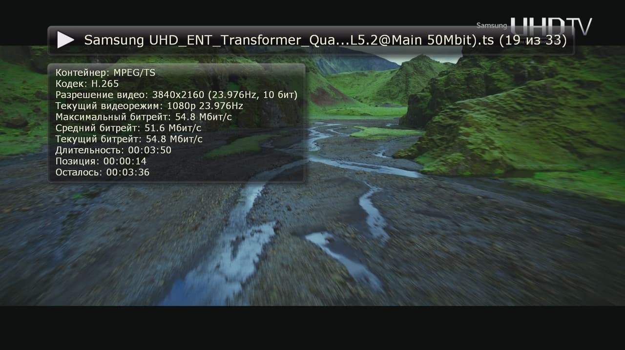 Что касается H.264, то многие видеоролики 4K (в частности, с современных фотоаппаратов и видеокамер, демо производителей телевизоров и другие, в том числе и с высоким (порядка 100 Мбит/с) битрейтом) мы посмотреть смогли. Но и здесь ограничение на fps — не более 30. А также только 8-битный цвет.