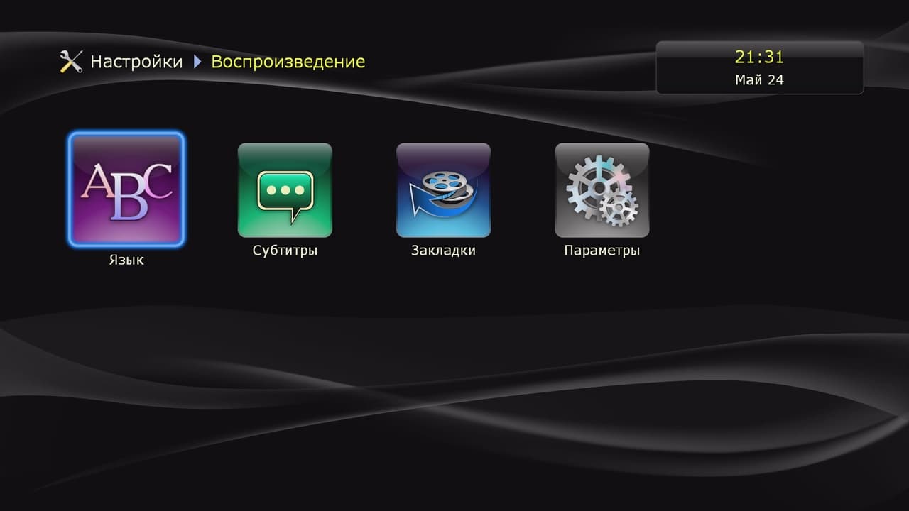 При первом включении или после сброса, пользователю предлагается указать основные параметры работы плеера, включая язык интерфейса (русский, конечно, присутствует в списке), стандарт ТВ, режим видеовыхода, сетевое подключение, часовой пояс и другие.
