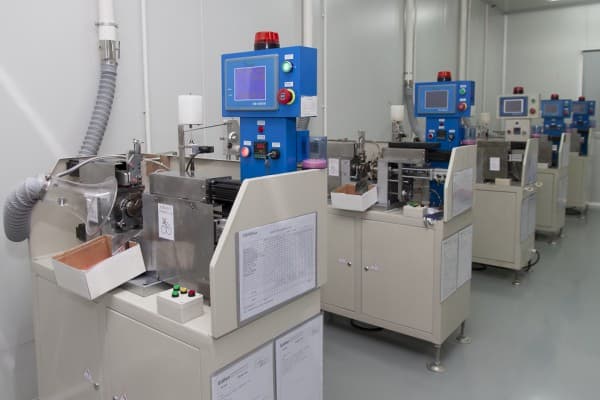 Рядом с конвейером располагается небольшая комната, в которой происходит изготовление катушек индуктивности. Катушки наматываются автоматически на специальных станках, запечатленных на фото.