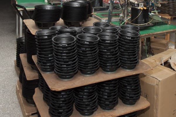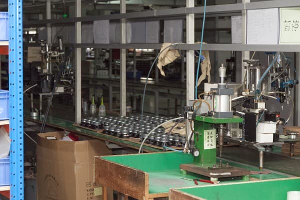 В производственном помещении можно было увидеть большое количество диффузородержателей, магнитов, подвесов, клемм и прочих деталей головок. Процесс сборки осуществляется в ручном режиме, в том числе на специальных крепежных станках.