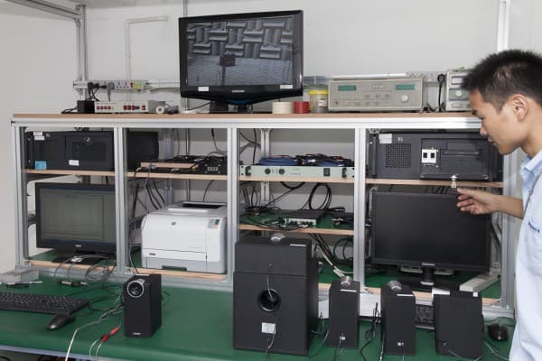 После того, как колонки будут собраны, выбираются случайные экземпляры из партии, с которыми проводятся различные тесты ЭМС, а так же тесты на вибрационном стенде и тесты на механическую прочность.
