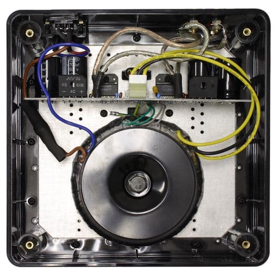 В усилительном тракте используется тороидальный трансформатор, обеспечивающий биполярное питание 23В на 2.4А. В качестве усилительных микросхем производитель использует два одноканальных усилителя мощности LM3886 от National Semiconductor.