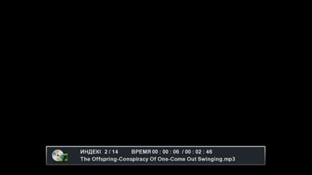Расположенный на лицевой стороне аппарата буквенно-цифровой вакуумно-люминесцентный экран напомнил те самые стародавние видеомагнитофоны — они все снабжались именно такими экранами. Во время работы рекордера на экране отображаются (прокручиваются) английские наименования пунктов меню, в которых в данный момент находится пользователь, наименования выделенных и проигрываемых файлов. Кириллица не поддерживается, вместо неё отображается какая-то абракадабра (отметим: в настоящее время разработчик усовершенствует прошивку, в следующей её версии появятся и кириллица, и другие шрифты). К сожалению, названия каталогов, в которые заходит пользователь, на этом экране не отображаются, а значит, без телевизора тут вряд ли посёрфишь по папкам на диске. Здесь же, в разных углах экрана, имеется информация об используемом видеовыходе и режиме работы. Индикатор прогресса (времени) воспроизведения отсутствует.