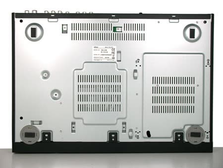 Дно рекордера испещрено вентиляционными прорезями. Устойчивость на ровных поверхностях аппарату придают четыре круглых ножки с резиновыми клейкими накладками.