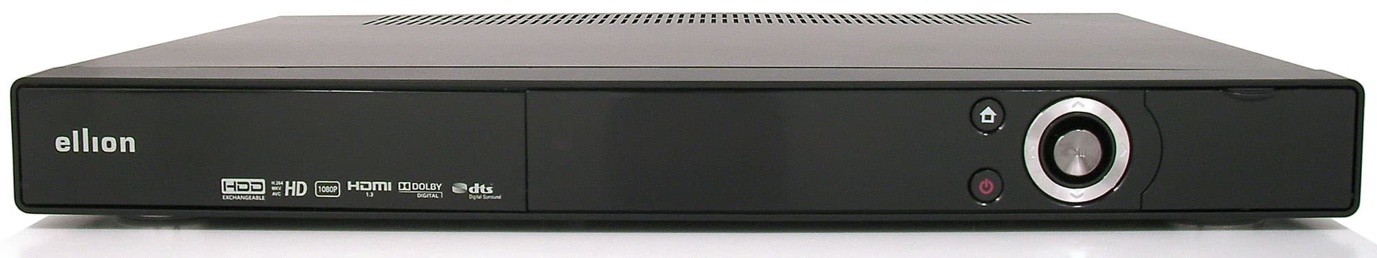 Своим конструктивом аппарат напоминает DVD-плееры. Правда, в нашем случае кнопок на лицевой стороне значительно меньше. Точнее, всего лишь три: кнопка вызова главного меню, кнопка включения аппарата/перевода его в режим ожидания и пятипозиционная кнопка-джойстик для навигации по меню.