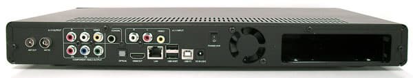 В правой части задней панели находится исключительно тихий вентилятор, работающий на выдув. Чтобы услышать его работу, можно попробовать приложиться ухом к корпусу аппарата, но и в этом случае звук работающего жёсткого диска помешает уловить неслышное жужжание вентилятора.