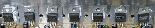Две микросхемы LM1875T служат для усиления сигнала на сабвуфер. Учитывая то, что схема усиления мостовая, при низком значении THD мощности микросхем хватит с большим запасом.