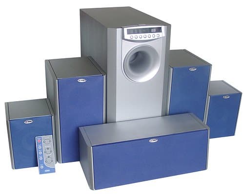 Акустическим оформлением всех пяти колонок является схема с фазоинвертором. Отверстия фазоинверторов выведены на заднюю панель. Толщина всех стенок центра и фронтальных колонок составляет 15 мм, тыловых — 10 мм. Все узлы и соединения выполнены аккуратно и достаточно герметичны. Внутри корпуса никакого звукопоглотителя не наблюдается. Среднечастотные динамические головки в центральной и тыловых колонках одинаковые, мощностью по 15 Вт. Диаметр бумажных диффузоров составляет 10 см, гибкий подвес выполнен из полипропилена. На фронтальных колонках используются немного более мощные широкополосные динамики — 20 Вт. Диаметр бумажных диффузоров составляет 11,5 см, гибкий подвес здесь выполнен уже из мягкой резины. Твитеры, используемые в центре и фронте, совершенно одинаковые. Их диффузоры, диаметром 25 миллиметров, выполнены из пластика и закрыты фазовыравнивающим колпачком. Подключение динамиков в центральном и фронтальных колонках параллельное, и в качестве разделительного фильтра используется электролитический конденсатор ёмкостью 2,2 mF.