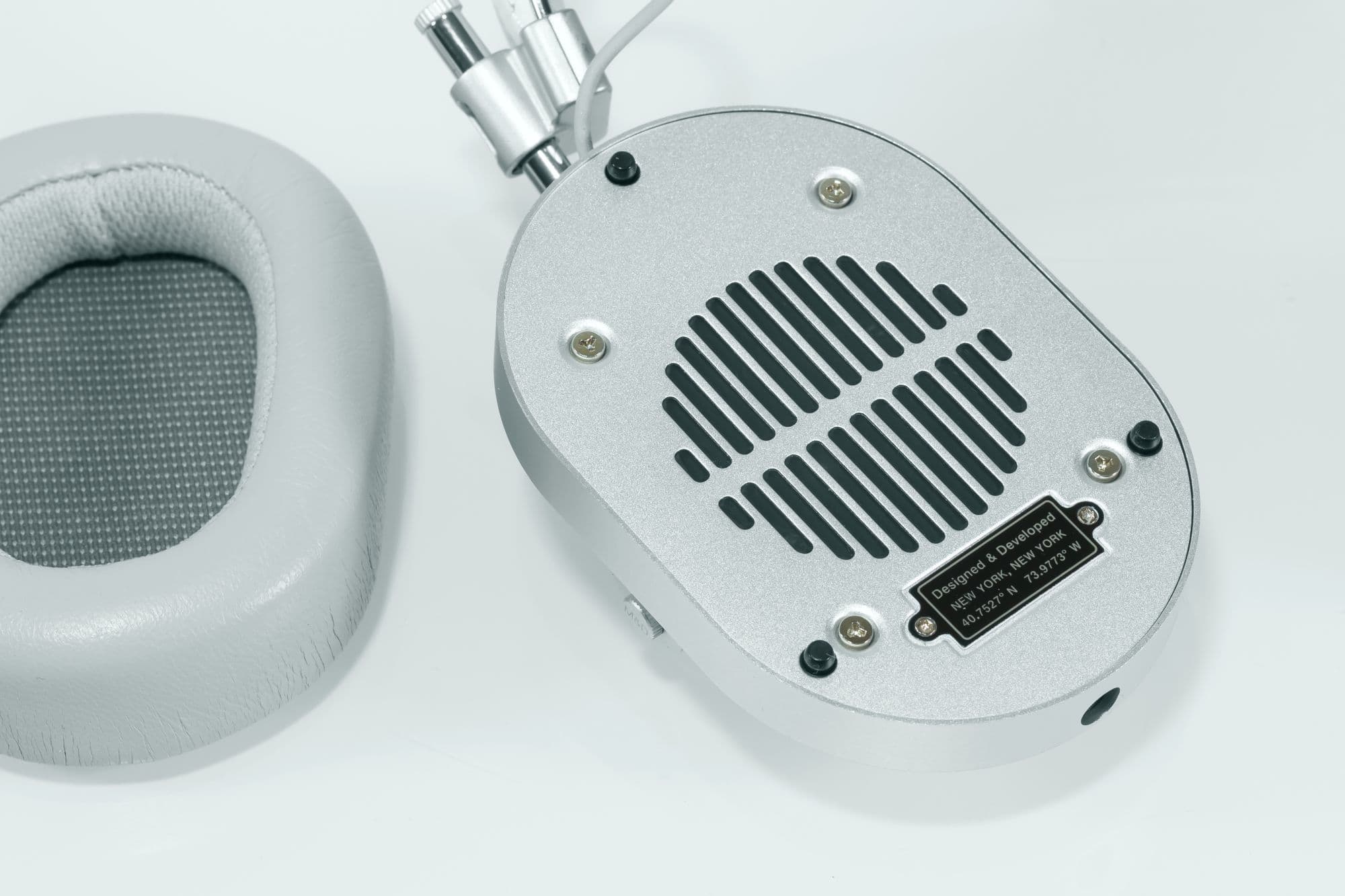 Мы использовали для прослушивания несколько моделей наушников, включая американские наушники Master & Dynamic MH40. Нам достался белый дизайн, существует еще несколько цветовых вариантов. Дизайн тяготеет к ретро. Все части, выглядящие на фотографии как пластмасса, на самом деле выполнены из металла. Подушки и оголовье заключены в ягнячью кожу. Общий внешний вид сильно напоминают американские бренды, работающие в стиле ретро.