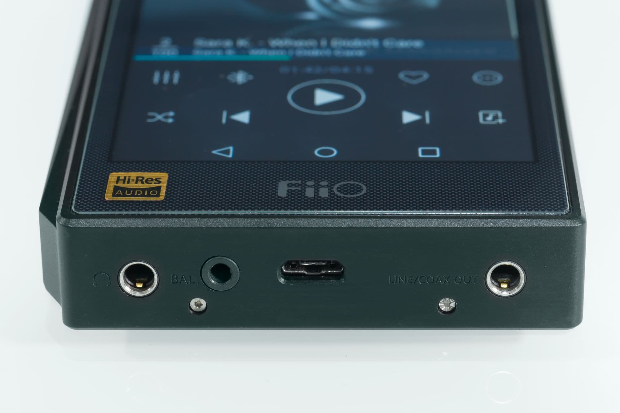 Помимо чисто программных кнопок, плеер имеет и аппаратные play/stop, следующий/предыдущий, а также цифровое колесико громкости. Все это выгодно отличает его от просто телефона или от просто мобильного ЦАП. К тому же, здесь есть чистый линейный выход на отдельном разъеме миниджек, на который можно вывести сигнал без регулировки громкости.