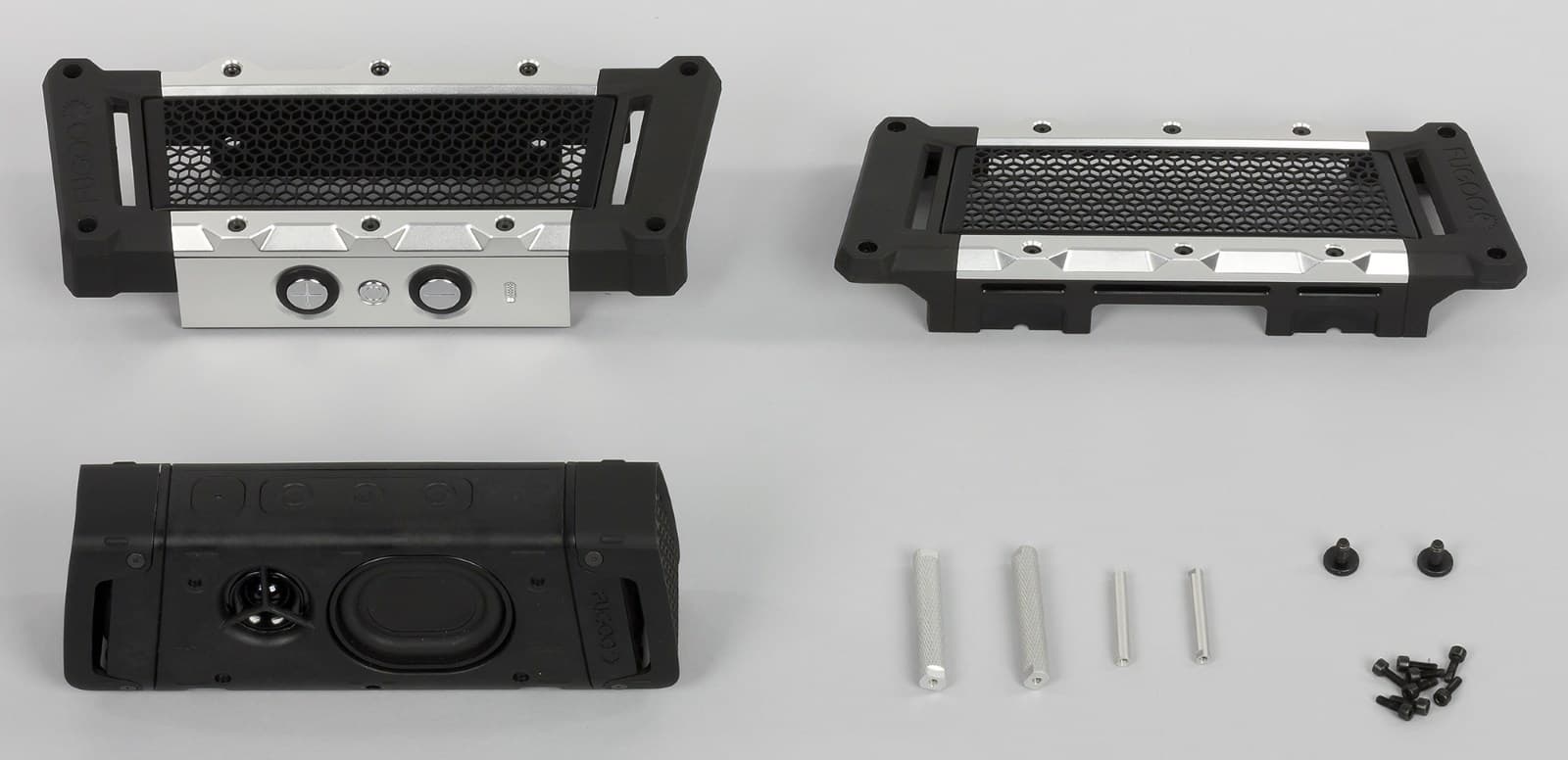 Снизу находится крепление для фирменных аксессуаров, с помощью которых можно установить Fugoo Tough в самых разных местах. Теперь разберем устройство, чтобы взглянуть на саму акустическую систему, именуемую Fugoo Core.