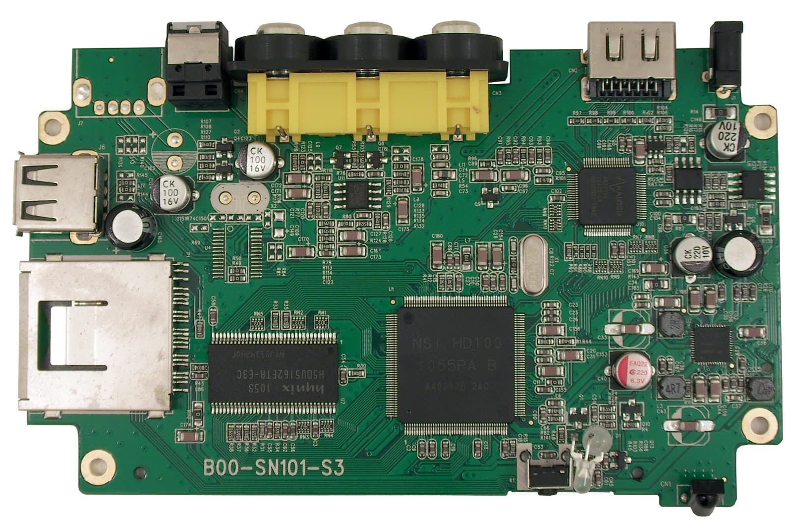 Печатная плата занимает всю площадь корпуса. В центре платы главный чип — NSI HD100, работающий на частоте 400 МГц.